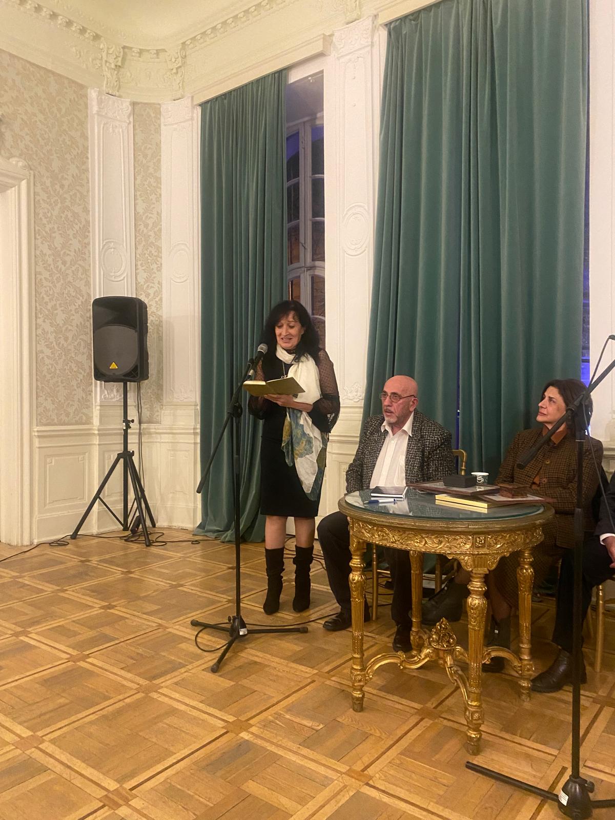 Daha sonra kitabın redaktoru, Tbilisi Dövlət Universitetinin professoru Giorgi Qoqolaşvili, Gürcüstan Yazıçılar İttifaqının sədri, şair Makvala Qonaşvili, Gürcüstanın Xalq şairi Erekle Sağliani, Gürcüstan Yazıçılar İttifaqının həmsədri, Dövlət Mükafatı laureatı, şair Badri Kutateladze, tanınmış şair Tamar Maxaradze, nasir Lali Mikadze, daha sonra Enriko Canelidze, Marina Koxidaşvili, Sopo Abxazava-Şaraşenidze kimi mədəniyyət xadimləri çıxış edərək kitaba daxil edilmiş əsərləri təhlil etmiş, müəyyən esseləri səsləndirmişlər.